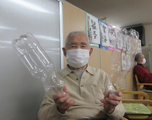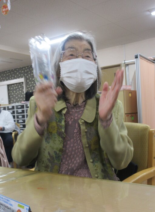 お菓子の箱や、ペットボトルなどを使用して、楽器をご利用者さんに手作りして頂きました♪