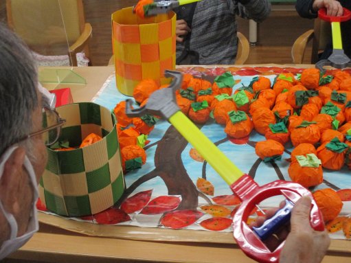 岐阜市民には身近な柿をと・・・今回は皆さんで摘みとっていただこうと『柿狩りゲーム』で楽しみました。