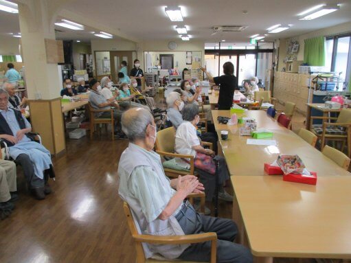 ご利用者様お一人お一人に声を掛けられ皆さんも懸命に返事をしていきます。