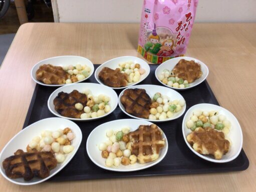 おやつには雛あられとワッフルを召し上がり「とても美味しい」と喜ばれていました😍