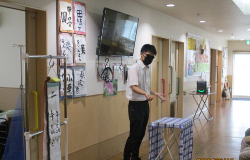 職員によるマジックショーでは、コインが消えるマジックを行いました。