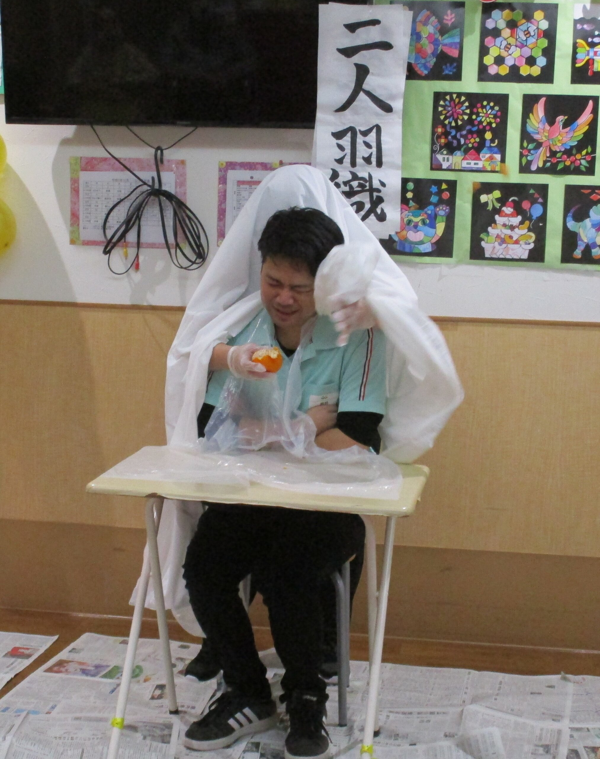 みかんは目に染みる~😖 うどんは熱い~~~😵💫 みんなは、心配しながらクスクス(笑)☺️