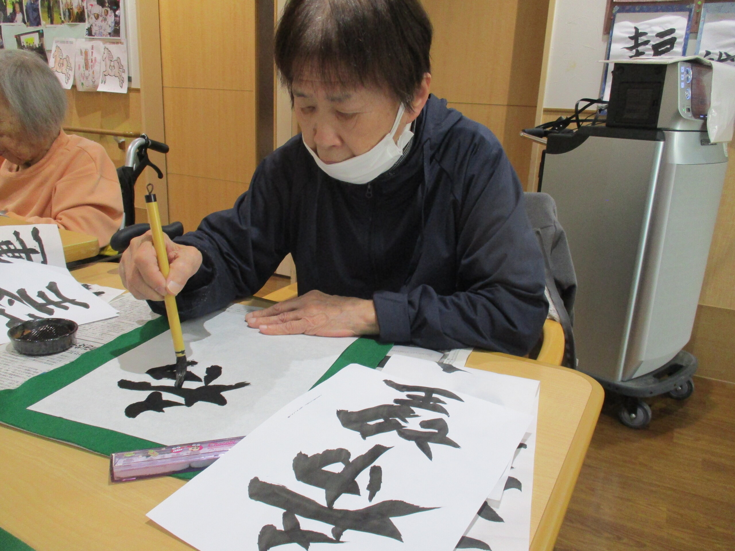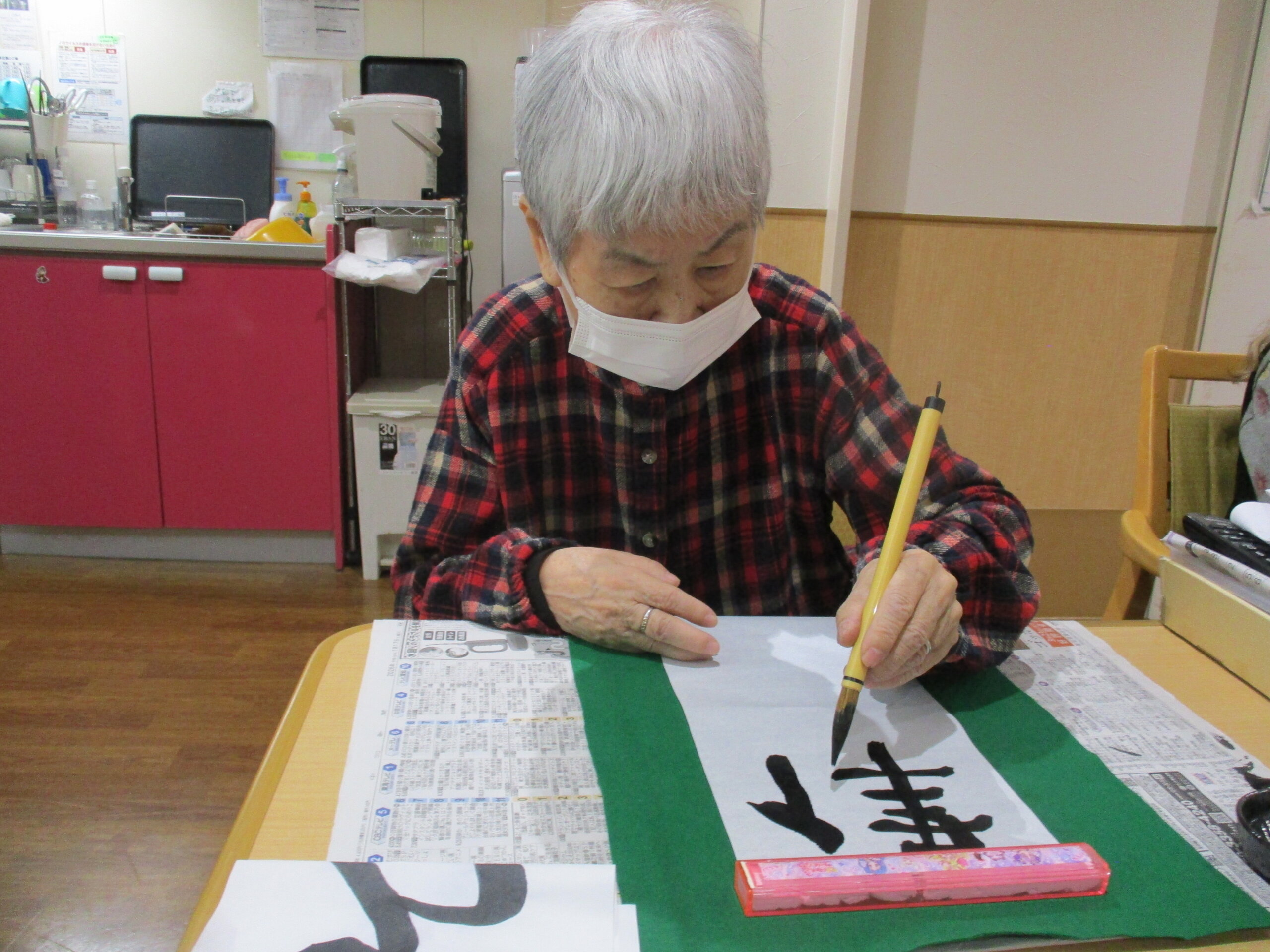 書初めの時はご利用者さんは、筆を持つと自然と表情が引き締まり
