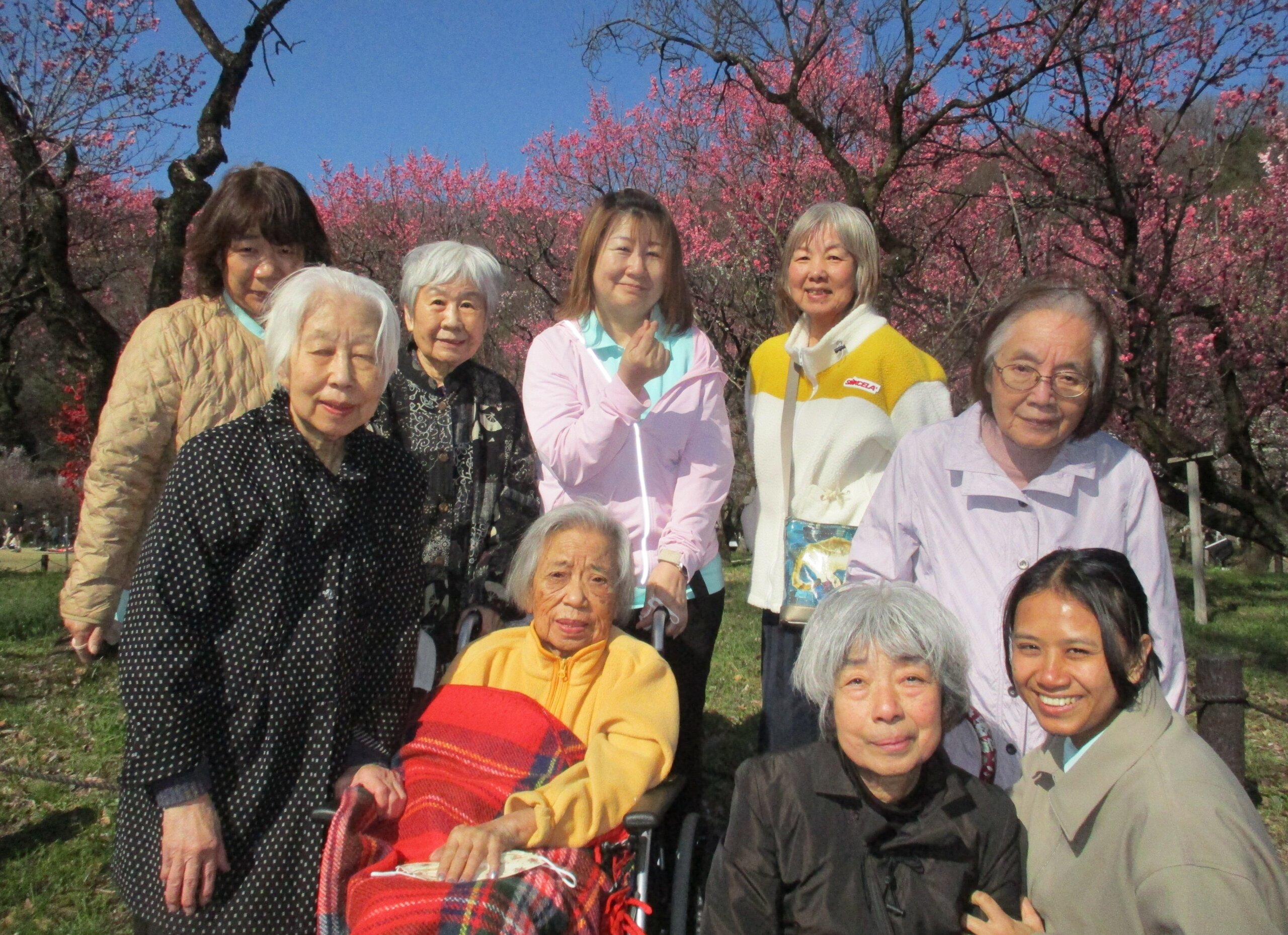 そして、ご利用者さんにも春を思いっきり感じていただこうと急遽、梅林公園の梅まつりへ行って来ました。