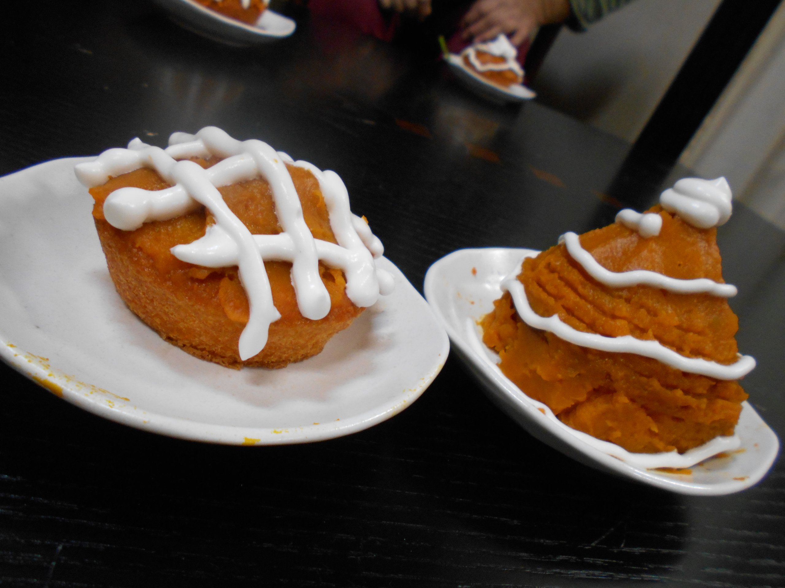 かぼちゃクリームを作り、生クリームで飾り付けしました。結構、甘めにしていたつもりでしたが、「全然甘くないよ?」と・・・