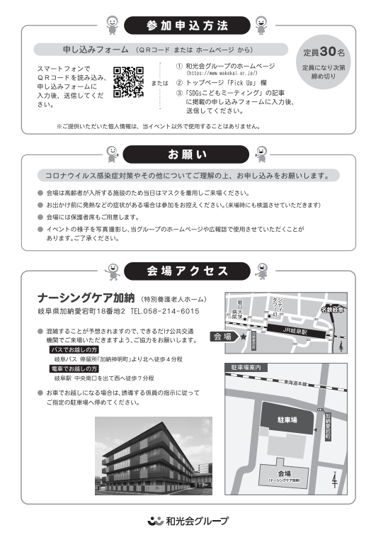 申込先 和光会ホームページお知らせ 第5回SDGsこどもミーティング開催のお知らせより