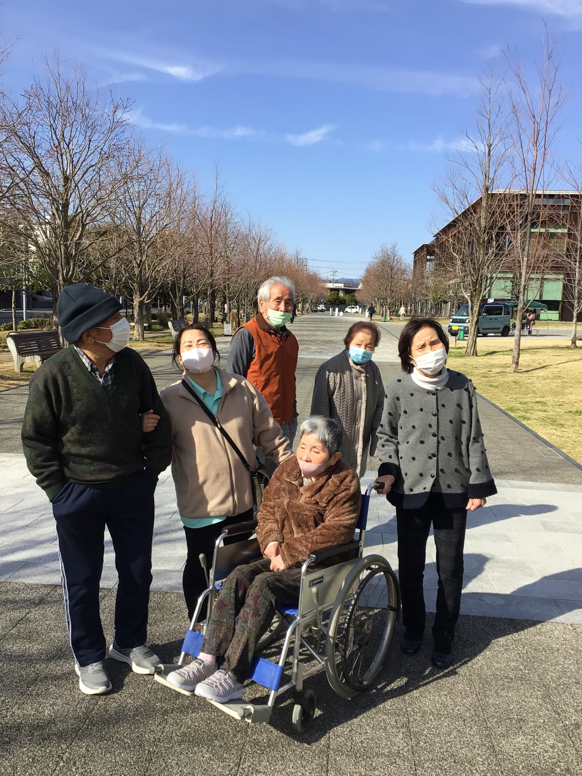 ご利用者さん同士で「きれいだね」「春だね」と会話も弾み、普段とはまた違った表情や交流の様子を見ることができました。外の空気を感じながらの散策は、気分転換にもなり、皆さまにとって心地よいひとときとなったようです。🌸🌷💕