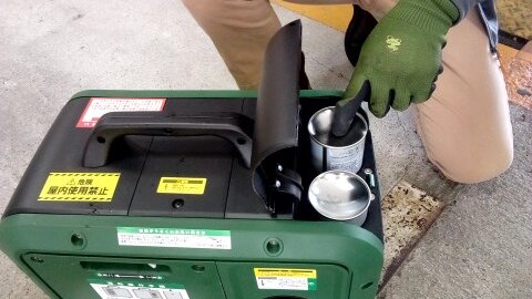 家庭用のカセットボンベを燃料として発電できる優れものです!事業所の職員で発電機の操作方法を学びました!