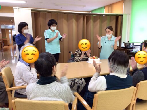 ご家族が誕生日ケーキを用意され、みんなで集まりお祝いを🎂
