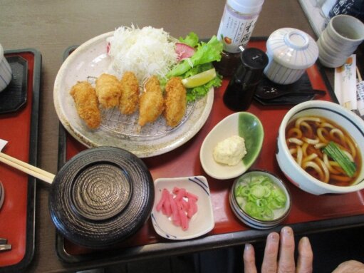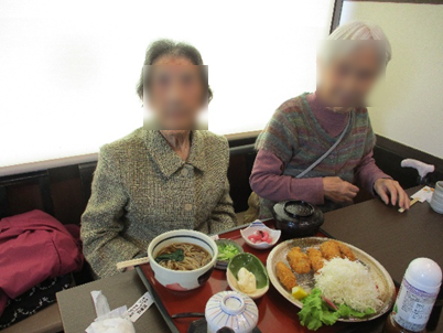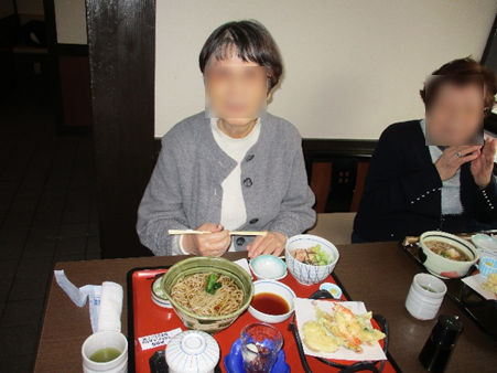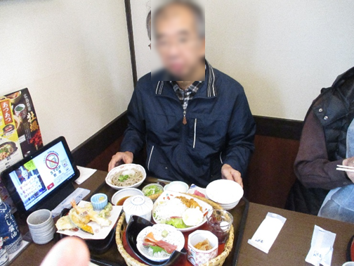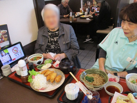 昔から煮込みうどんが好きでいつも煮込みを頼んでいたが今回も煮込みうどんを頼まれ懐かしそうに召し上がる人もいらっしゃいました。寒くなるこの時期に温かい食事はほっこりしますね❣天ぷら、かきフライ、茶碗蒸し、ミニ丼、デザート全部いただくとお腹も満腹😋✌️になり、ご満悦でした。皆さん外食はとても楽しみにされています。