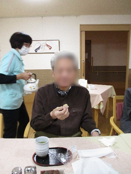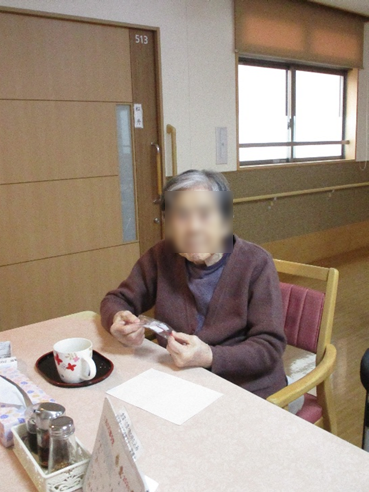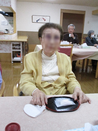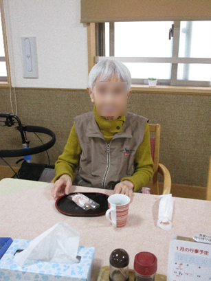 帰宅後、皆さんで食堂に集まってお正月のお菓子『花びら餅』🥮と緑茶🍵をいただきながら茶話会をしました。お正月の気分でお正月番組📺を見ながらゆったりとお話して過ごされました。