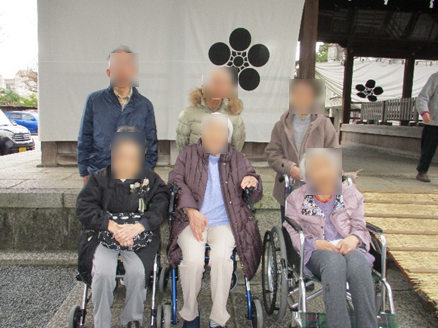 いつもは外出されない方も新年の初詣🎍には13人の方が参加されました。お天気に恵まれ皆さんお詣りされていまし。上まで行けない方はお賽銭🪙を預け、境内の下で同じように手を合わせて🙏お詣りをされていました。”今年も健康に過ごせれますように”と祈願して無事初詣を終えてから記念写真を📸撮りました。
