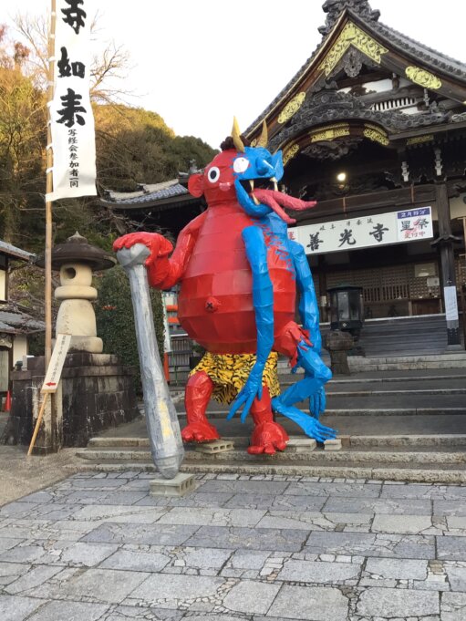 到着し、鬼を見ると「大きいね」「変わった鬼やね」とお話されています👹