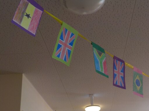 「どこの国だろ?いってみたいね」なんてお話しながらたくさんの国旗ができました。