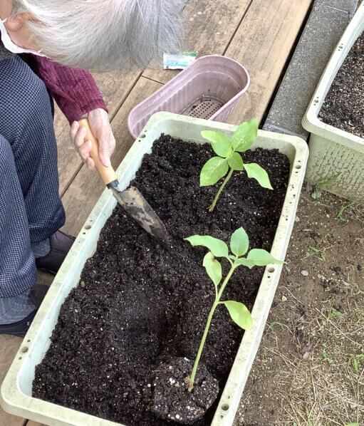 毎年植えている背が高くなるひまわりの苗は事前にスタッフが準備してくれていましたよ