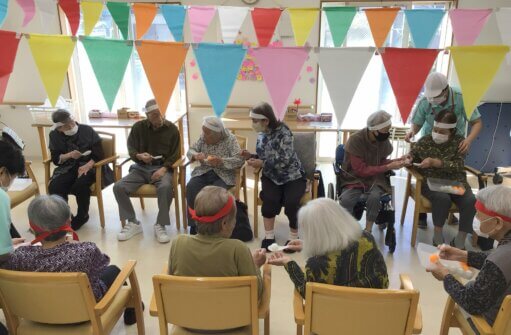 普段認知テストで使用している長谷川式を参考に、5つの物(スリッパ・バケツ・歯ブラシ・メガネ・etc)を準備し、皆さんに記憶してもらい、競技終了後に何があったかを思い出してもらいます。