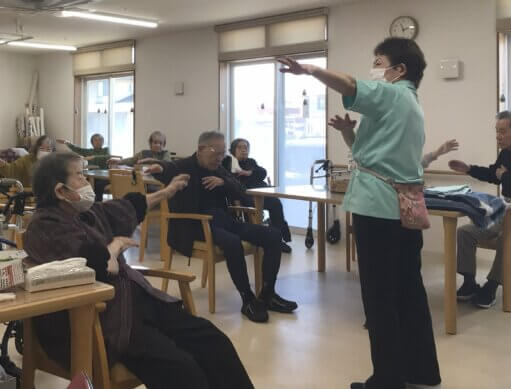そこで普段午前中に行っている体操の光景をご覧いただきましょう。