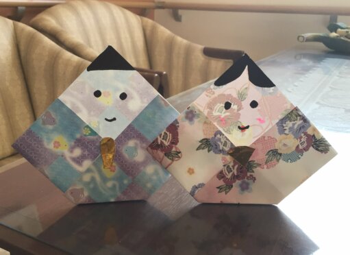 和風の折り紙を使い、十二単まではいきませんが着物がわりに折りまして・・・