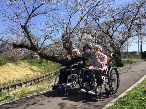 外に出る機会の少ない利用者様は、青空の元、春の象徴”桜”を満喫されていました。