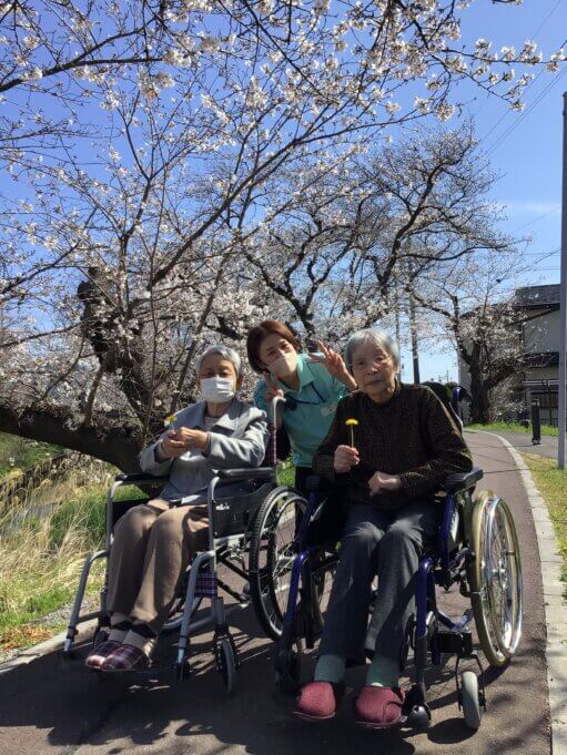 外に出る機会の少ない利用者様は、青空の元、春の象徴”桜”を満喫されていました。