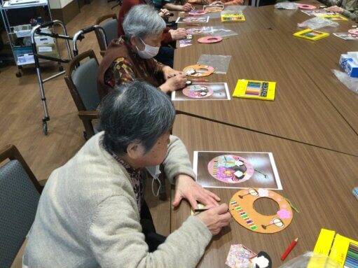 身体を動かしリフレッシュした後は「ひな祭りリース」を作りました。