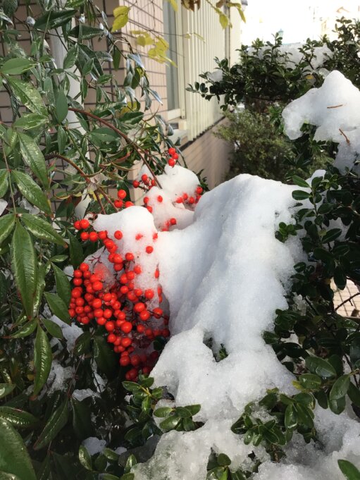 G☆star長良の庭先にある南天にも雪⛄が積もりました。