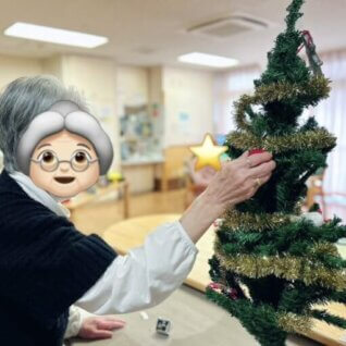 そしてユニットのクリスマスツリーの飾りつけ。皆さんお好みの飾りを手に取って寂しいツリーを綺麗に彩ってくださいました🎄