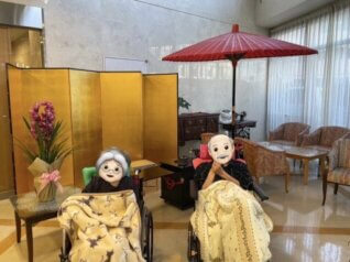 エントランスには立派な金屏風とともに、野点のお道具がお客様をお出迎えしました✨各ユニットにもお正月飾りが飾られ、施設館内が華やかになりました!!
