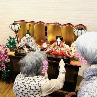 もうすぐひな祭りということで、ナーシングケア寺田の施設内も各階・各ユニットひな祭りの飾りつけがされて盛り上がっています☆