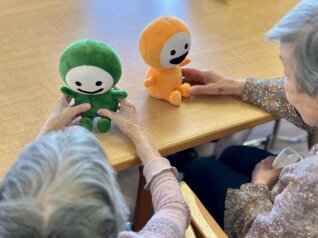 のんびり屋のなごみちゃん(みどり色)、しっかり者のひかるちゃん(オレンジ色)の性格の違う2人ですが、みんなが笑顔になることを毎日2人で願ってくれています☺️💓2人はとっても仲良し💛