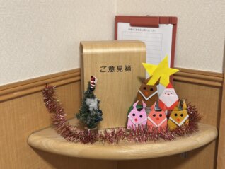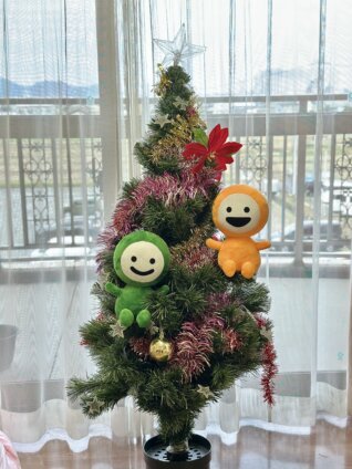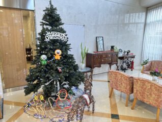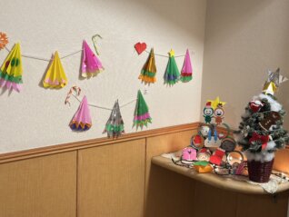 各階・ユニットそれぞれにクリスマスの飾りつけがされ、施設館内がクリスマスカラー一色に染まりました❤️💚クリスマス飾りの中には、和光会グループの公式キャラクター 「なごみちゃん・ひかるちゃん」もいました💛みんなから愛されていますね😊