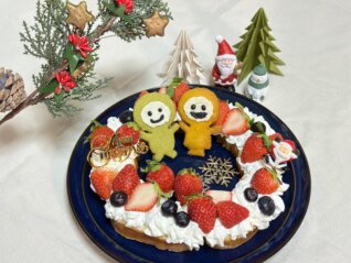 僕は、なごみちゃん・ひかるちゃんのクッキーを作り、ケーキに飾り付けてみました🎂楽しいクリスマスになりました🌟