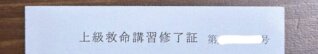 上級救命講習は、心肺蘇生やAED、異物除去、止血法などの普通救命講習の項目に加え、小児・乳児の心肺蘇生、傷病者管理、外傷の応急手当、搬送法などを学ぶことができます。講習時間は8時間で、消防署の職員の方から分かりやすく指導を頂きながら幅広くしっかりと学ぶことができ、実技は本当に為になるものでした!!最後には実技と筆記試験もあり、無事に合格し、上級救命講習修了証をいただきました!!