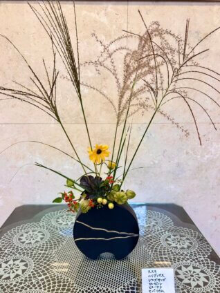 ススキ、ヘリアンサス、ジュズサンゴ、ローゼル、ヒューケラ、ヒペリカムです。