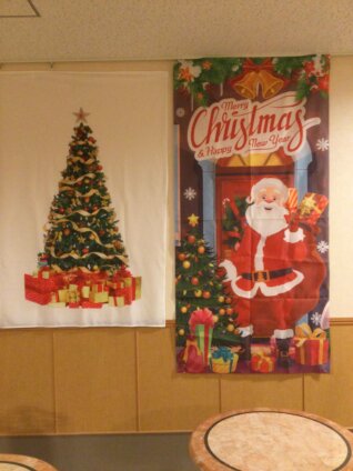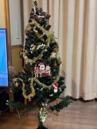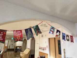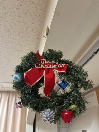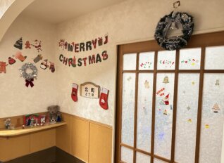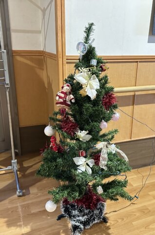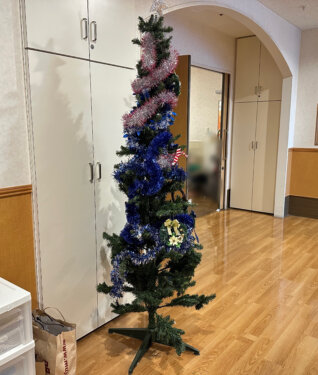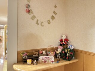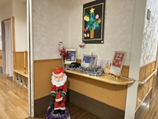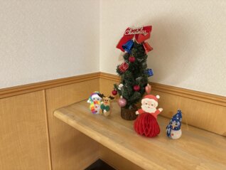 ナーシングケア寺田の施設内は、あちこちにクリスマスツリーなどが飾られ賑やかです!