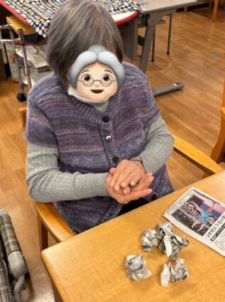 本物の豆はフードロスになってしまう…という事でSDGsで学んだことを活かして捨てる新聞紙で作ろう!とご利用者さんと新聞を丸めて沢山の豆を作りました!✂️