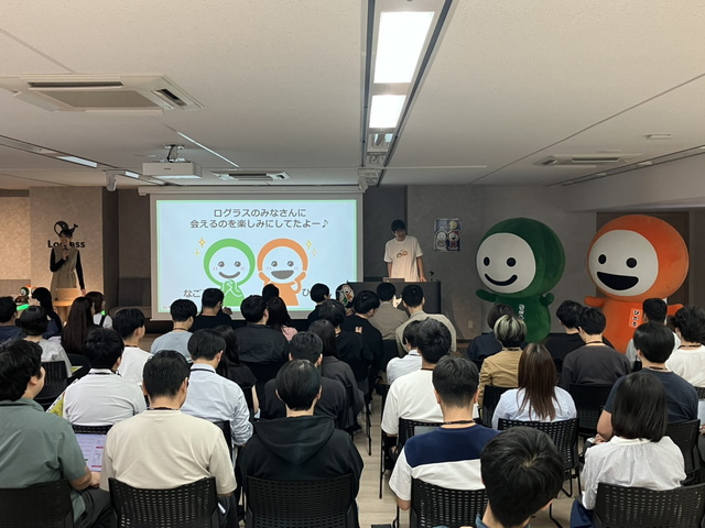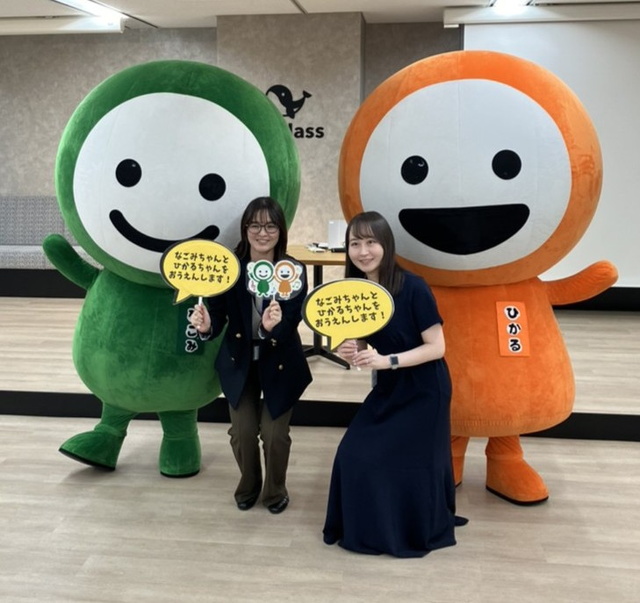 ログラスの社員の皆さまは、これまでもオンライン投票でなごみちゃん・ひかるちゃんをたくさん応援してくださっていましたが、この日もペンライトや「なごひかうちわ」を手作りして温かく迎えてくださり、とても嬉しく思いました。