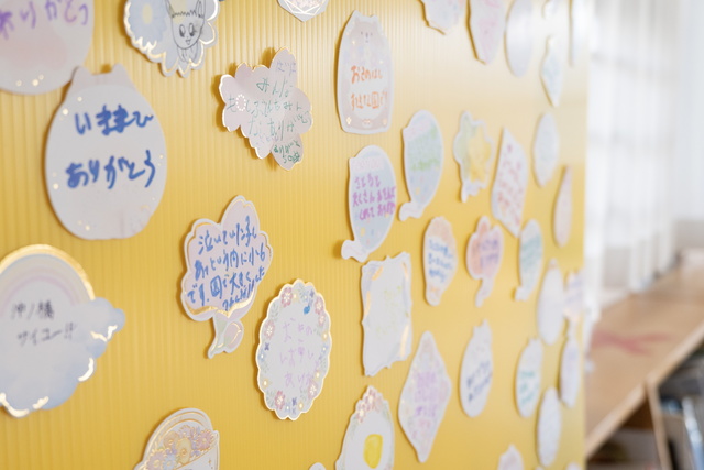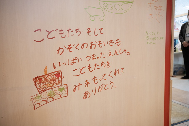 長年、子どもたちの成長を見守ってきた園舎を舞台に、思い出の園舎やお絵描きパネル、園内各所に絵やメッセージを残していただきました。