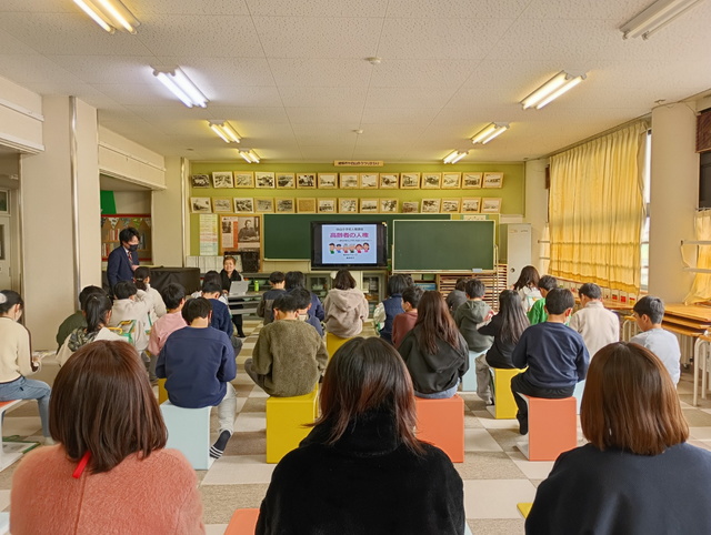 今回は授業参観日にあわせて開催され、児童の皆さんだけでなく、多くの保護者の皆さまにもご参加いただきました。三世代同居の家庭が比較的多い地域特性もふまえ、講座では身近な事例を通して、高齢者の人権について一緒に考える時間となりました。