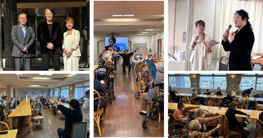 ロイヤルコート寺田およびナーシングケア寺田のご利用者約30名が参加され、ヨシ・タツさんの自己紹介に続き、座ってできる体操やじゃんけん大会を行いました。体操では、柳ケ瀬プロレスの柚原社長の掛け声のもと、ユーモアを交えながら上半身をしっかりと動かし、会場には笑顔が広がりました。