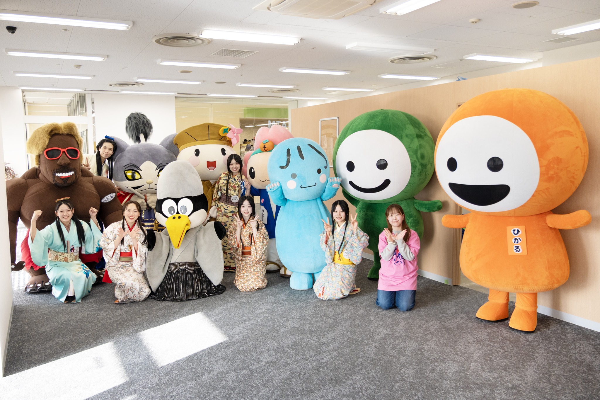 当日のステージ「ご当地キャラクターの時間」には、なごみちゃん・ひかるちゃん(なごひか)のほか、ミナモ、本巣市のもとまる、大垣市のおがっきぃなど、11体のキャラクターが登場し、会場を盛り上げました。