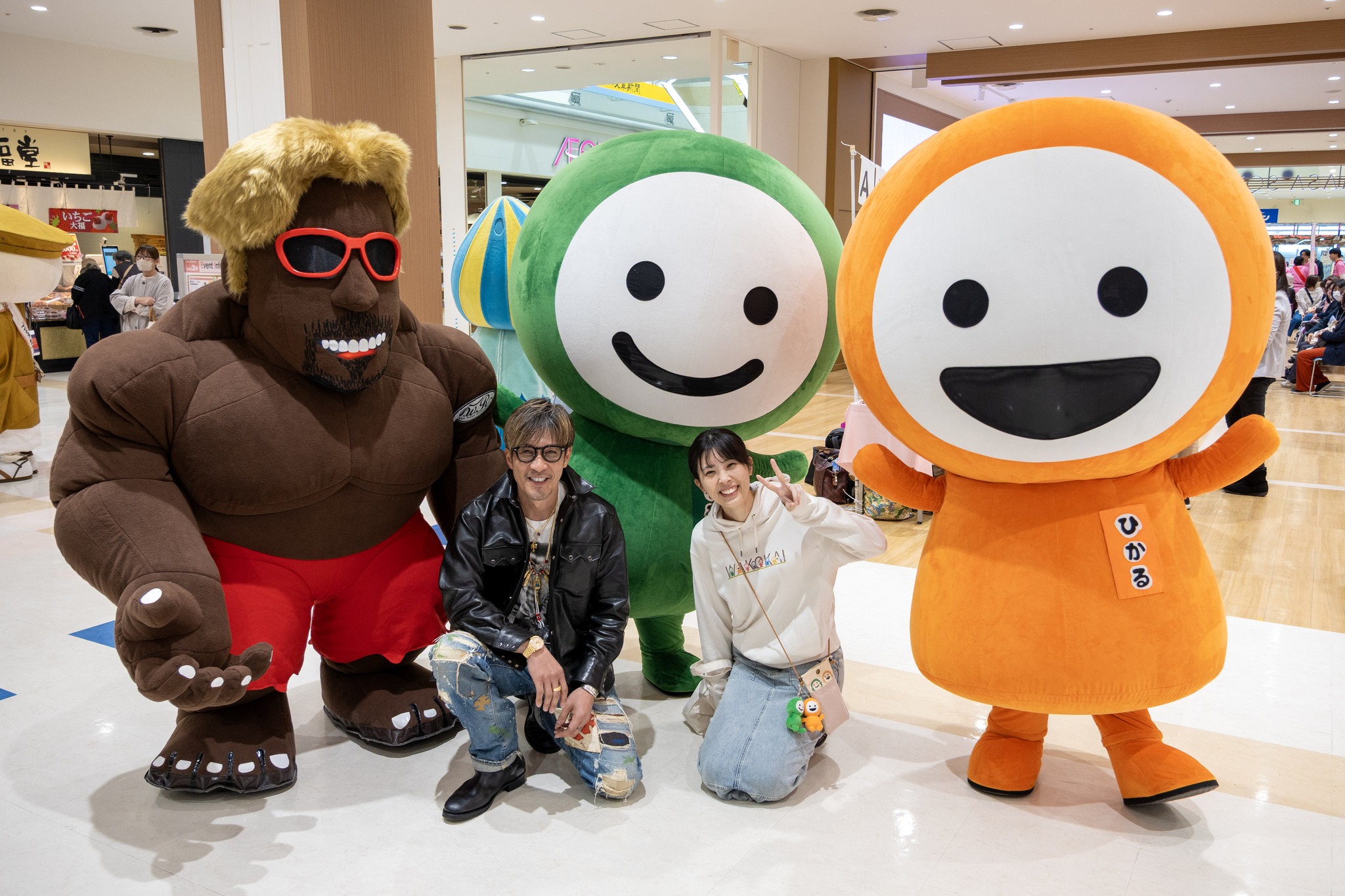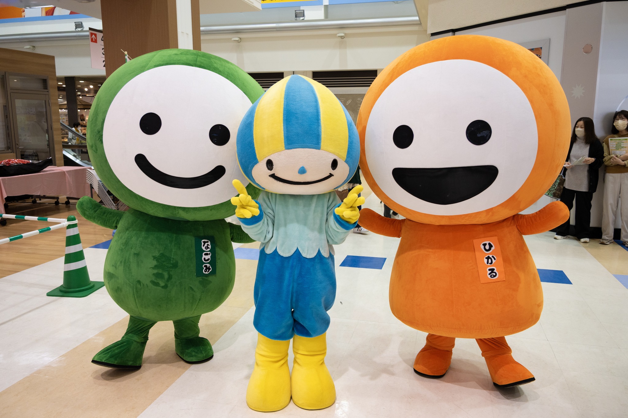 来場者とのグリーティングの時間では、以前「なごひかラジオ」にご出演いただいた坂口捺染さんの坂口社長をイメージしたキャラクター「テルラくん」となごひかが遊ぶ様子に、会場からは温かい笑顔が見られました。