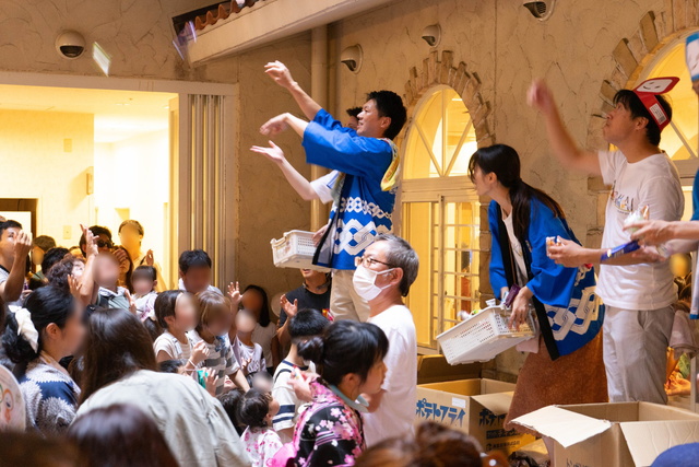 その一つとして、かつて東海地方でお祝いの際に行われていた「お菓子まき」を実施。予想を上回る多くの方にお集まりいただいたため、予定の回に加えて追加で開催いたしました。小さなお子さまから大人まで、皆さんに楽しんでいただけたようです。