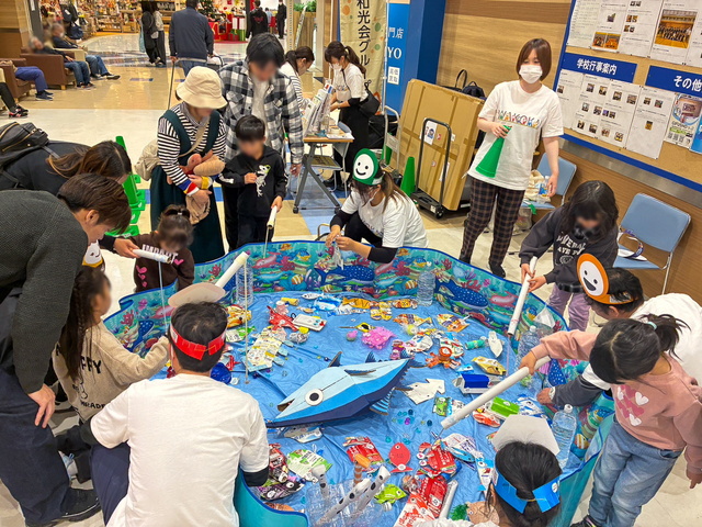 昨日11月30日(日)、岐阜市の商業施設マーサ21にて「SDGsこどもミーティング」を開催しました! 今年のテーマは、牛乳パックや食品トレーなどの廃材をリユースした「SDGsさかなつり」です