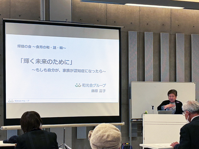 12月23日(火)、ぎふメディアコスモス「かんがえるスタジオ」にて開催された「燦餐(さんさん)の会」研修会において、医療法人和光会の藤原常務理事が認知症と食生活をテーマに講演を行いました。