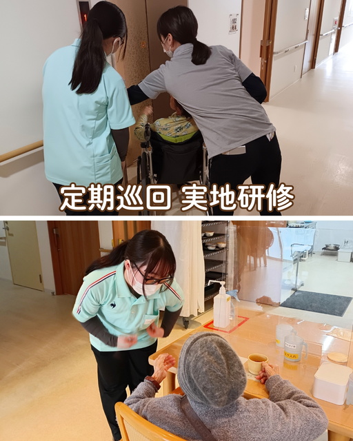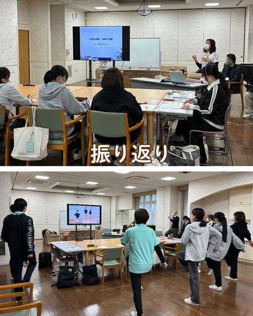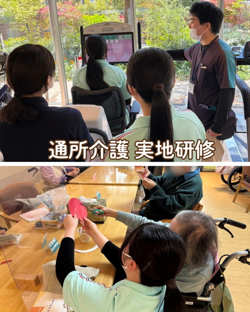また、通所介護や定期巡回サービスの実地研修も実施し、実際の現場を見学することで、サービスごとの役割や多職種連携について学びました。